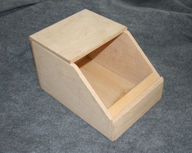 These boxes are put into cages with the doe on day 28 after breeding. This is where the doe will kindle and where the nest of kits will grow.
