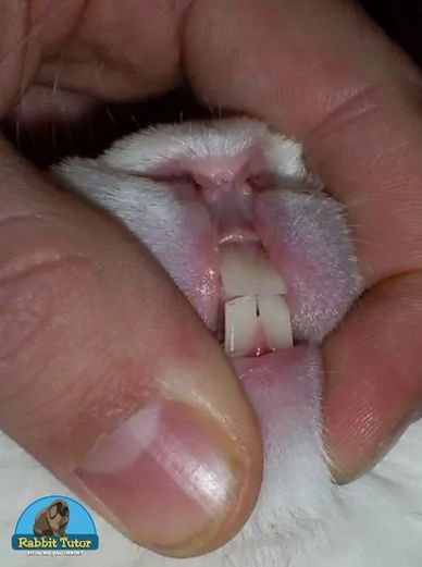 Open the mouth and lips. Check that the top teeth are in front of the bottom teeth and that they are straight.