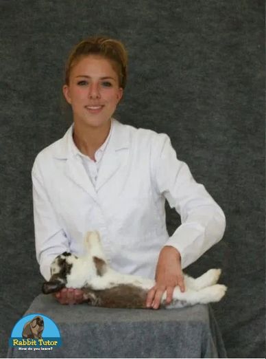 Place your hand on the rabbit's shoulders, loin and hindquarter from front to back