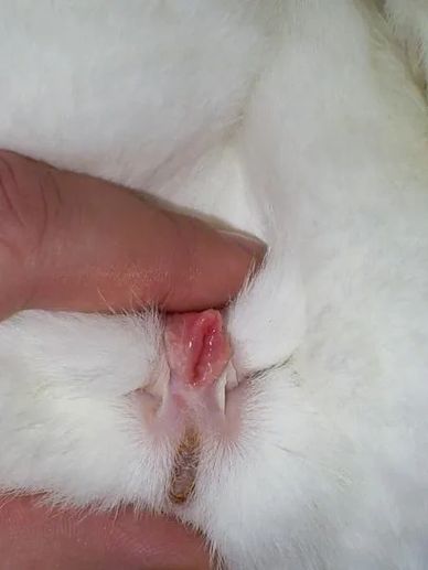 Press your index finger on the top of the penis or vulva to make it protude